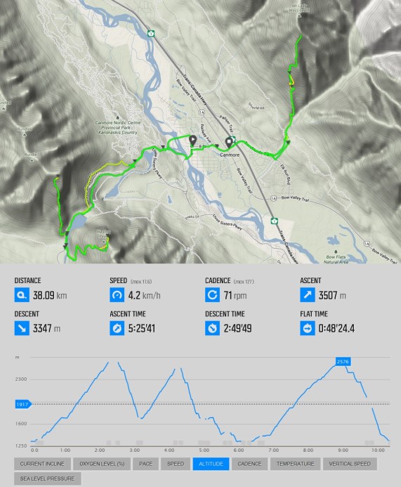 Splits: (7:45am start from Rocky Mountain Bagel Co., downtown Canmore)