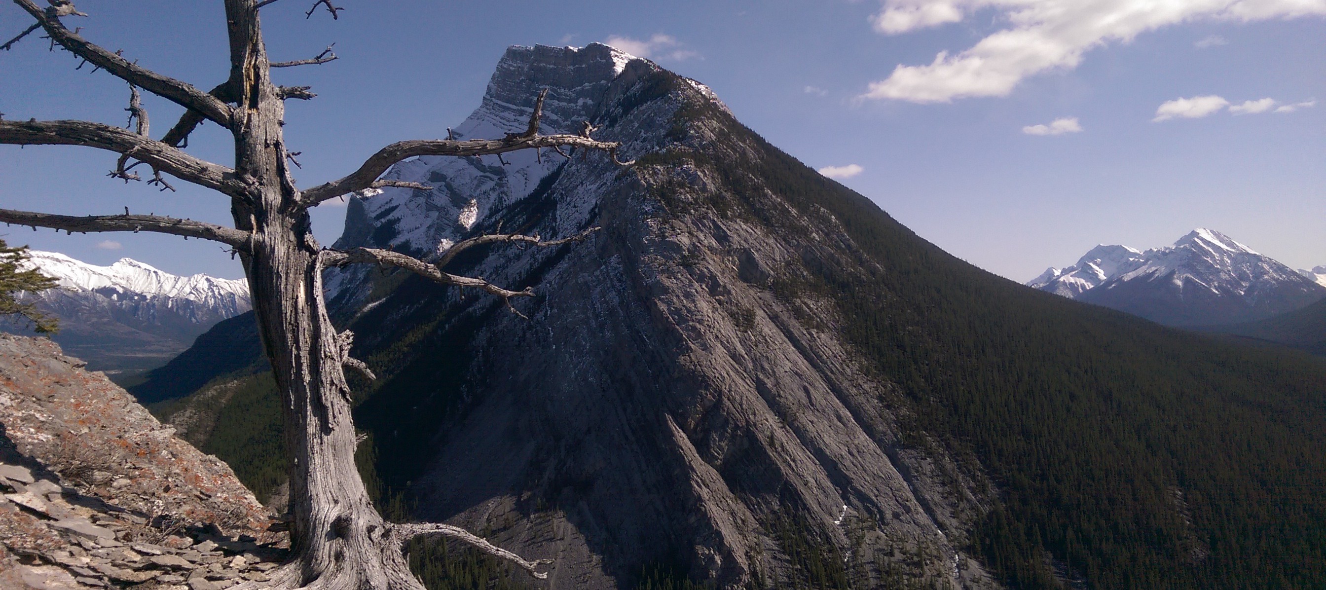A long day out, very tiring. Did a “rim to rim” of Canmore, parking my car at Elevation Place then running up Lady Mac on one side of the valley, then Ha Ling on the other. The ascent of Lady Mac was pretty strong and streamlined given I haven’t climbed anything other than Tunnel for a couple weeks. The whole experience on Lady Mac was incredibly smooth, including the awkward scramble up the final stretch to the summit ridge (one of my least favourite bits of mountain, anywhere). I just stuck to solid rock ribs and was on the ridge in less time than I remember. No true summit for me today; the knife-edge ridge was way too gusty for my liking. The descent back down Lady Mac was as quick and streamlined as the climb, save for losing my phone for five minutes and spending another five talking to a local mountain-running dude.