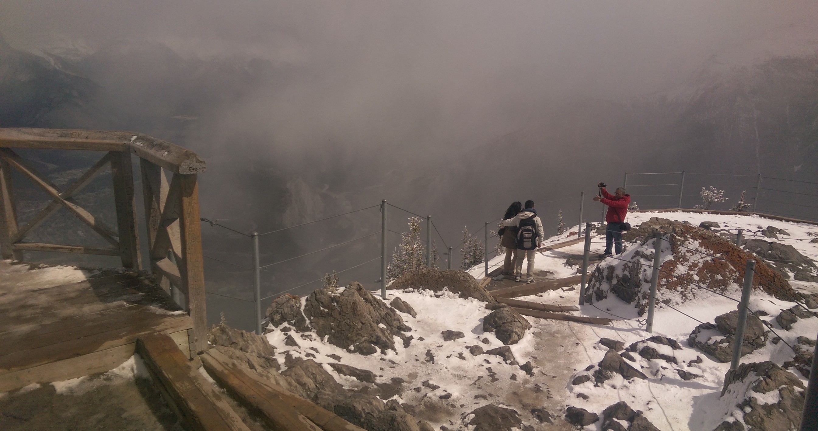 I headed up Tunnel and (of course) as I neared the top I saw the snowstorm beginning to clear over Sulphur. I felt so tricked and deceived by the weather that I decided that I would go bag Sulphur anyway, just out of spite. So I chomped half a Builder Bar on the top of Tunnel and swiftly descended back down to town, across the river, up behind the Fairmont castle and up the Sulphur Mountain trail. The run was pretty cruisy and in fact almost entirely running — err, jogging anyway — as opposed to the slogging I expected to resort to after a series of vertical-heavy days.