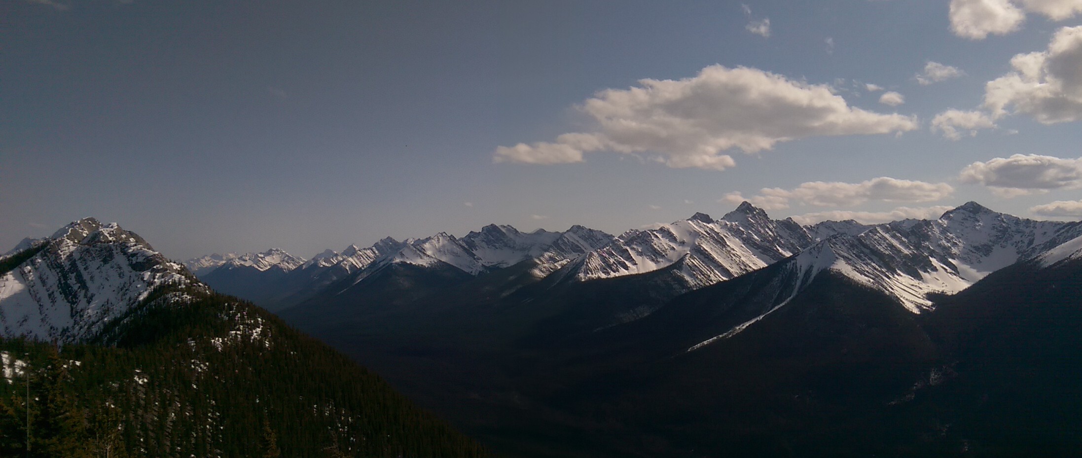 02/05/15 – Tunnel + Sulphur Loop – 3h04m/26km/1311m A decent-sized run, longer than originally planned, that illustrates well the deranged manner in which my psyche operates when it comes to motivation in the mountains. I left the house intending to do the exact same trip as yesterday but upon arriving at the Cave and Basin (~1km from my apartment), I stopped and marvelled at a wall of snow squall rushing over the top of Sulphur and up the Bow Valley toward me. As I was carrying almost nothing, I wasn’t in the mood to get hammered by flurries for an hour in shorts and a t-shirt on the exposed western side of Sulphur. I turned around and decided to stick closer to home and do something creative on Tunnel instead.