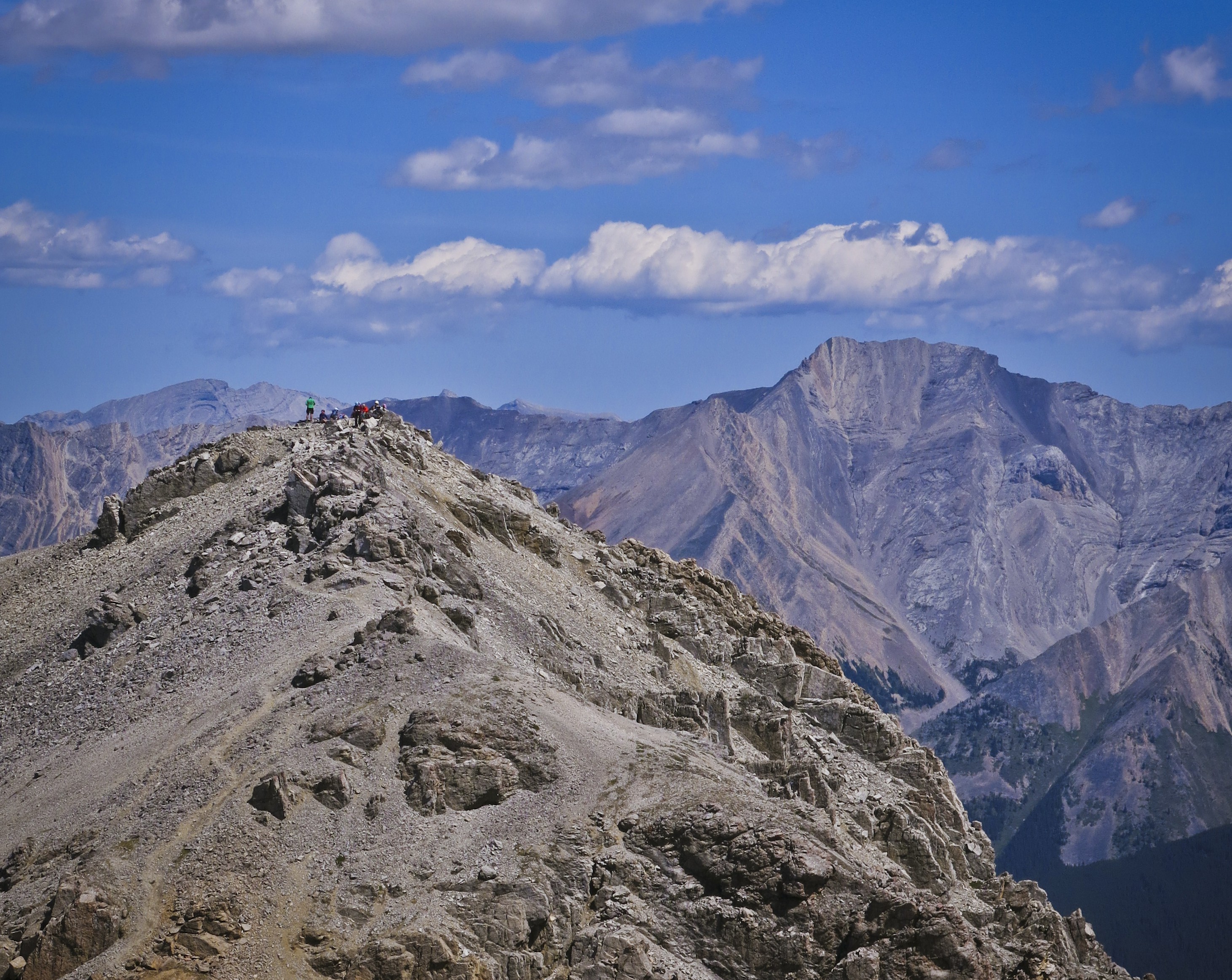 The weeks post running retreat were spent ascending disparate summits around Banff, all free from snow since I left to visit Ontario in early June. I bagged Edith North and ran the Cory-Edith Pass loop; Sean and I climbed Cirque Peak in a tiny window of nice weather bookended by torrential rain and blizzards; I ran up one of my favourite and most frequented summits, Bourgeau, carrying almost nothing. Mainly just my usual haunts.