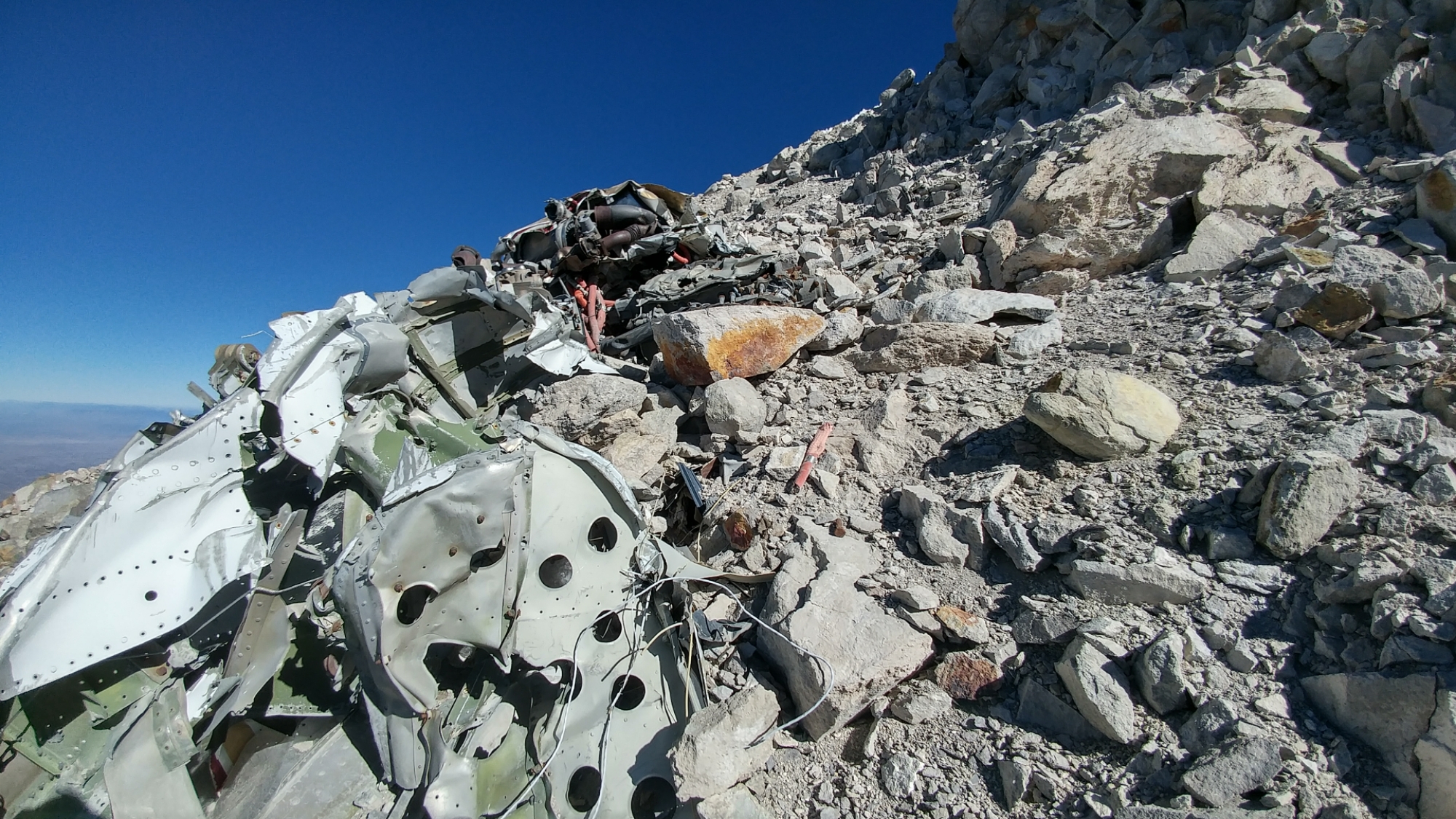Crawling around climber’s-left of the pulpito I discovered the remains of a small crashed airplane which provided the best handholds on the entire route. A small field of penetentes provided more things to hold onto, unless one happened to snap off.