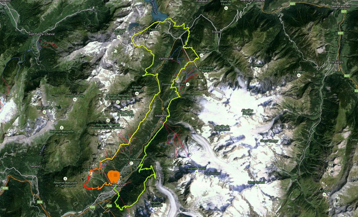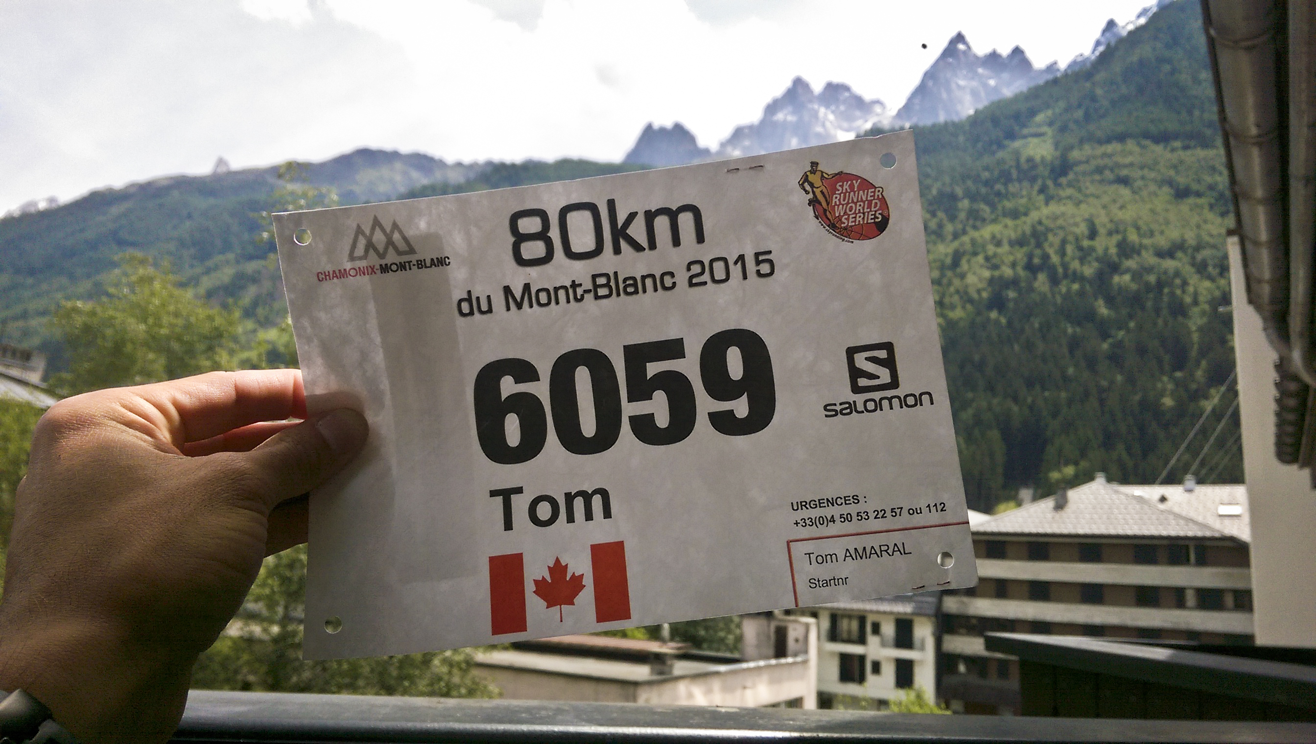 On Friday, June 26, 2015, two alarms woke me simultaneously at 2:30am. Though I was tired and had only slept a few hours, I forced myself out of bed, brewed up some espresso and started sawing a baguette in half. I emptied a package of salt into a glass of clementine juice and drank it. Just after three, I clicked on my headlamp and headed out for a jog. I shuffled along deserted streets, past the normally bustling Aiguille du Midi cablecar terminal and up a dim path that would be the same final metres I would spend on trail in what would be a thirteen hour day.