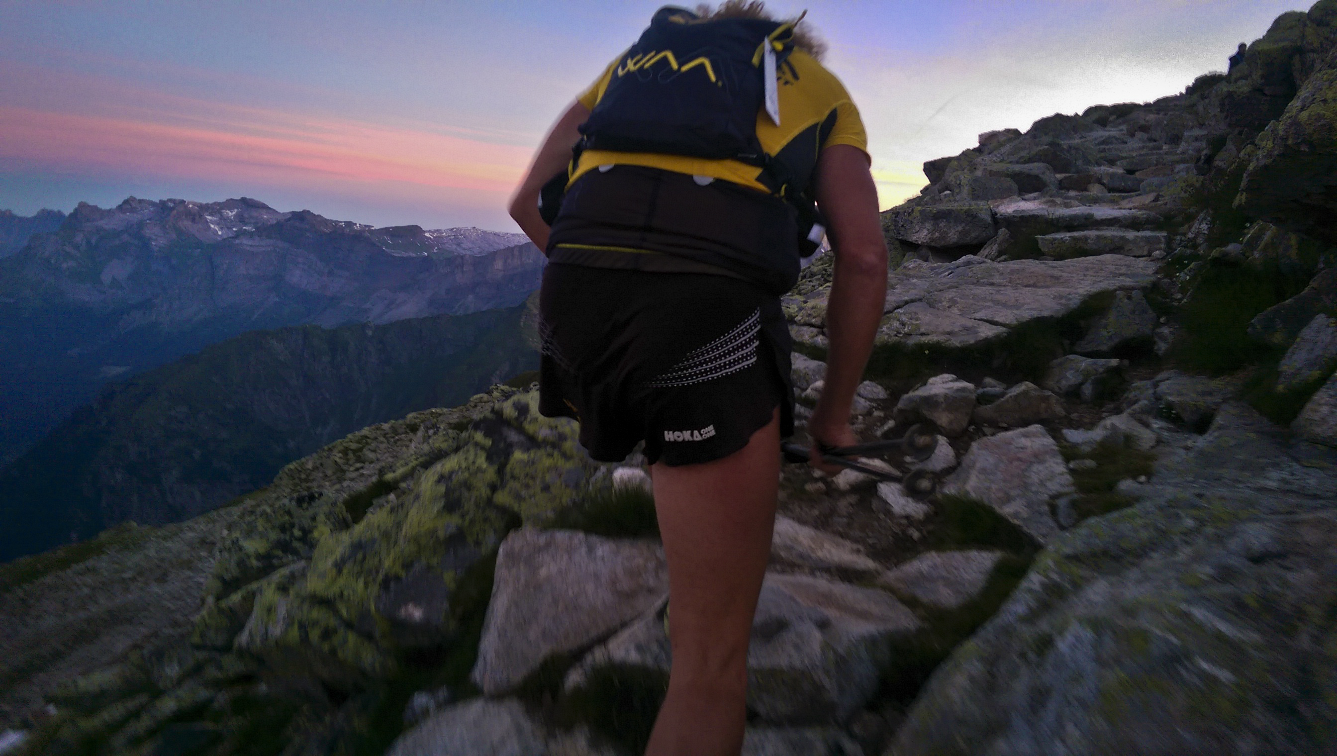 I felt like Kilian descending the fucking Matterhorn on the few short pitches where chains and cables were installed for assistance and here I thought to myself, this isn’t a “running” race at all, even on the downhills. The form of locomotion required to move swiftly through this kind of terrain and not tumble resembles, but can hardly be called, “running”. “Goating”, let’s call it.