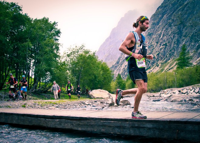 Race day started August 29, 2014 at 7:30am with a flurry of organized transport: first I took a city bus from Taconnaz — a neighbourhood on the outskirts of Chamonix where I was staying — downtown, then a coach to Courmayeur, Italy. The ride was short and mostly spent inside a tunnel beneath the Mont Blanc massive, this being the primary thoroughfare between these two mountain villages. The bus emerged into the Italian dawn and switchbacked down the hill as I peered around wide-eyed and unthinking, just taking in the enormity of my experience. “You’re here, at CCC, the big race,” I said to myself. “You should be so proud. All that preparation. All that training…”