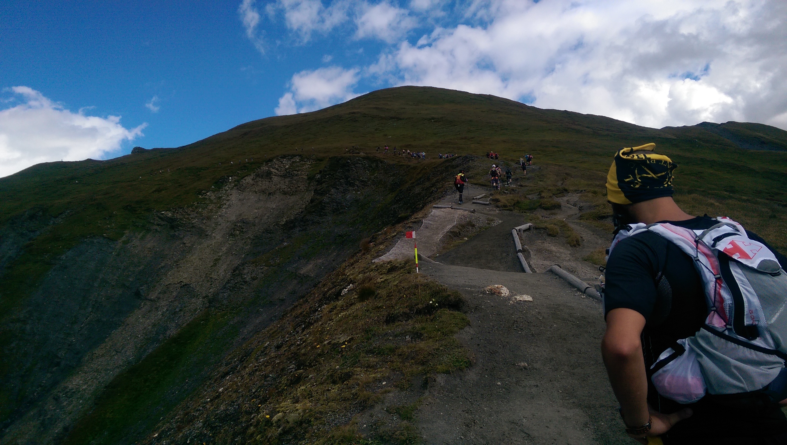Kicking into high gear after exiting Arnuva at km27, about to start the climb up to 2500m Grand Col Ferret.